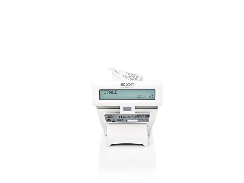 La stampante fiscale Hydra Axon Micrelec si pone ai vertici della categoria grazie all’eccezionale velocità di stampa. Il design compatto ed elegante integra un pratico visore cliente integrato e un meccanismo scorrevole che protegge la tastiera riducendo al minimo l’ingombro quando non è utilizzata. Dotata di tutte le funzioni necessarie, consente la gestione delle fatture e la chiusura e l’invio dei corrispettivi fiscali ed è facilmente programmabile tramite pagina web dedicata.